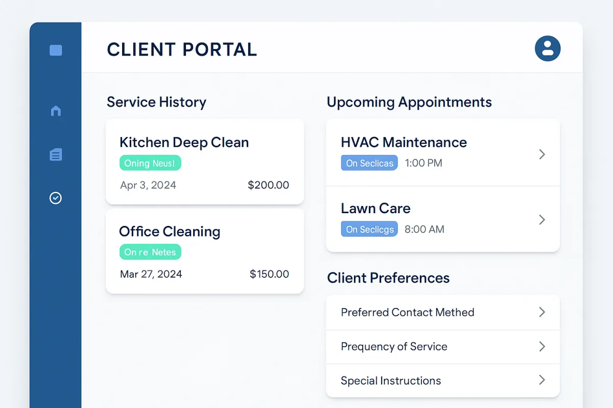 Client Preferences & Service History: Technicians access personalized service records, special instructions, and past work before each job, delivering tailored care.