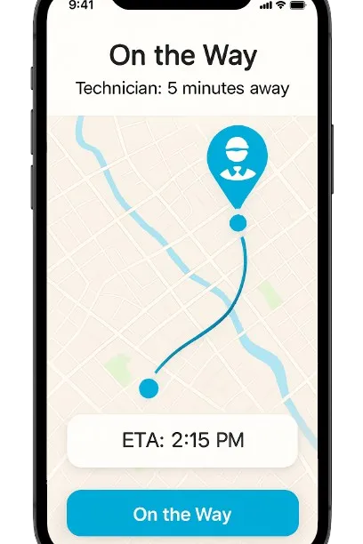 Live Location Mapping: Clients can view on a map exactly where the assigned technician is, their estimated time of arrival, and any changes to the schedule.